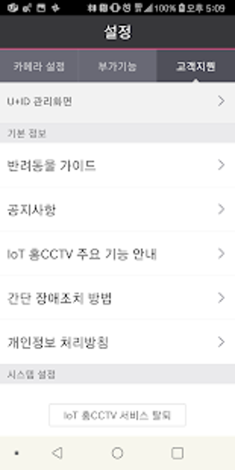 UIoT맘카는 안드로이드 9.0 이상에서 사용 가능합니다. 소프트웨어의 현재 버전은 01.07.04이며 한국어로만 받을 수 있습니다.